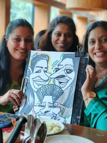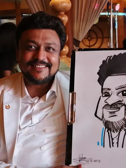 Hey, Philip here. Been doing live caricatures since 2012 – drawing faces at weddings, haldi, birthdays, even big-shot corporate dos. Love the buzz at events, especially when folks see their ‘fun version’ and crack up! I’m always sketching, even off-duty, just for kicks. Not just faces, I also make quirky wooden keychain holders. Art’s my jam, whether it’s on paper or wood, just want to add some masti (fun) to every day.