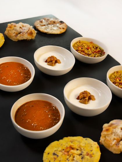 For us, bread is never just an accompaniment; it is an integral part of the meal. Our signature Bread Bar features a playful selection of fresh-baked Indian breads with inventive twists, like our parmesan chur chur paratha and black garlic naan, served with dal, chutneys, and pickles.