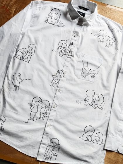 Wearable art - I paint memories and cute personalized couple doodle art on clothes and hankies, each piece unique for you or your pasandida sathi.