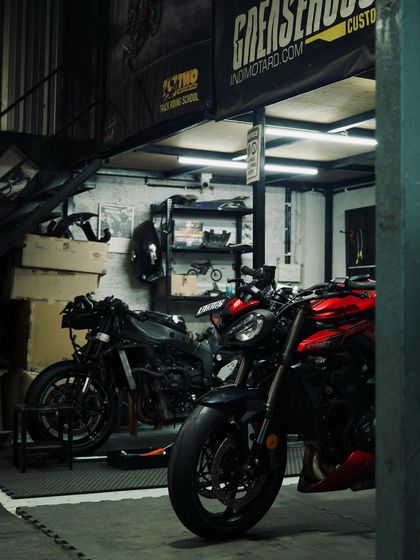 Greasehouse Garage - Service & Customs - Routine service, engine rebuilds for Royal Enfield, and wild custom projects like Harley Dyna Fat Bob builds. Arif’s got magic hands.