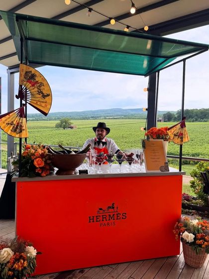 I set up mobile bars with interactive features like ice shot luges, drink wheels, and conveyor belt cocktails, and customize everything for your event, including themed carts and baraat bars.