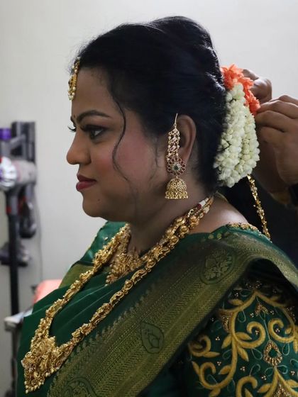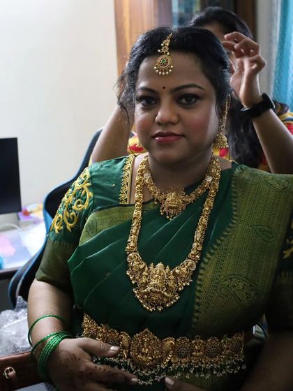 I provide professional makeup services specializing in traditional Indian looks, working in collaboration with Chaithra Gowda. My expertise lies in creating makeup styles that perfectly complement traditional attire and occasions.