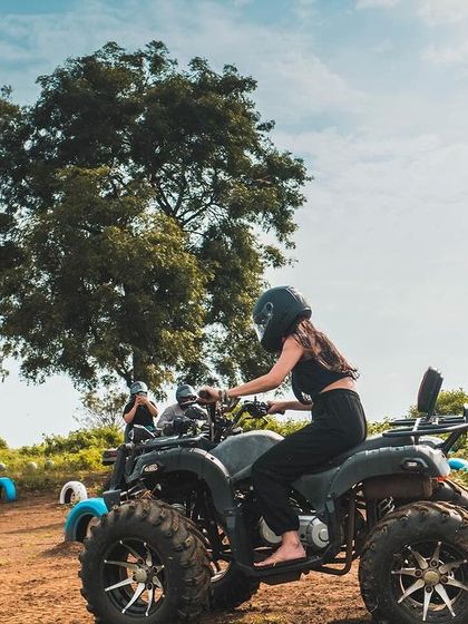 We offer guided adventure activities including ATV dirt biking, paramotoring, and kayaking. Our paramotoring experience lets you soar up to 1000 feet for aerial views of Hyderabad, while kayaking sessions run for 20 minutes at our lakeside location.