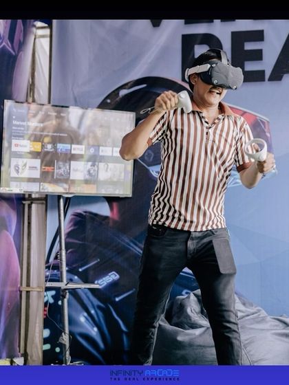 - VR party experience that’s next-level. Box in a virtual ring or explore wild worlds - I put up screens so even your friends not playing can watch all the masti (fun).