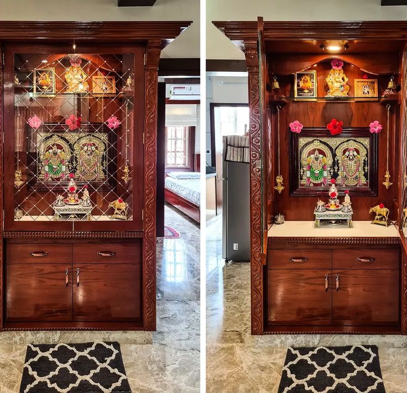 I design pooja units that are tailored to the client's spiritual and aesthetic needs. My work ranges from traditional, intricately carved wooden mandirs that stand as artistic centerpieces to clean, contemporary prayer spaces integrated into modern homes.