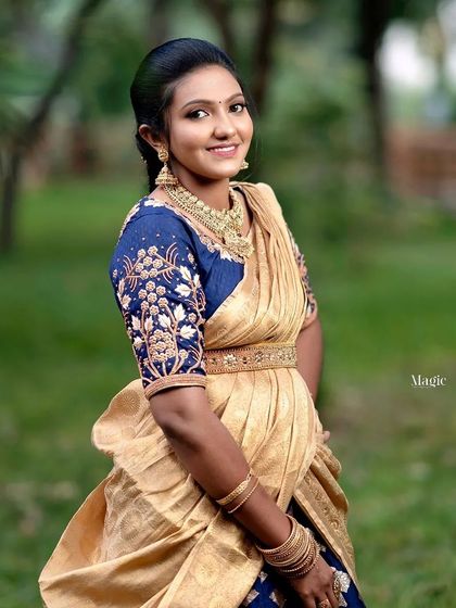 - Workmanship: Features intricate Aari/Maggam hand-embroidery, beadwork, and stone embellishments.