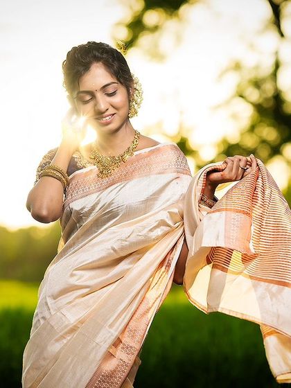- Fabric: Photogenic Semi-Silk, Art Silk, or Soft Silk sarees in traditional colors (Bottle Green, Mustard, Pink).