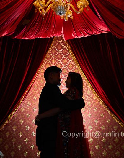 We handle everything for your pre-wedding shoot and film with our studio, themed sets, props, costumes, and editing so you just show up and get both photos and a cinematic film without any extra planning.
