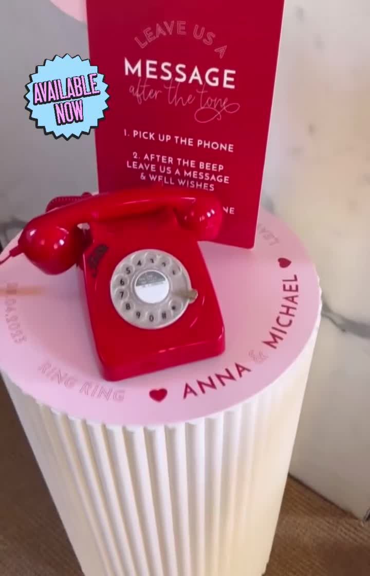 This is my most popular and versatile option, perfect for any space. The setup includes a stylish retro phone on a dedicated podium with a simple sign so your guests know exactly what to do.