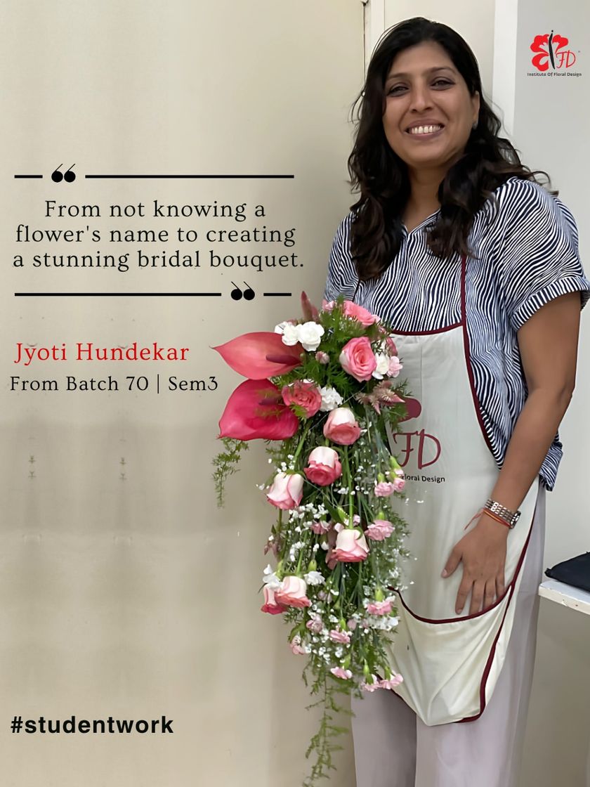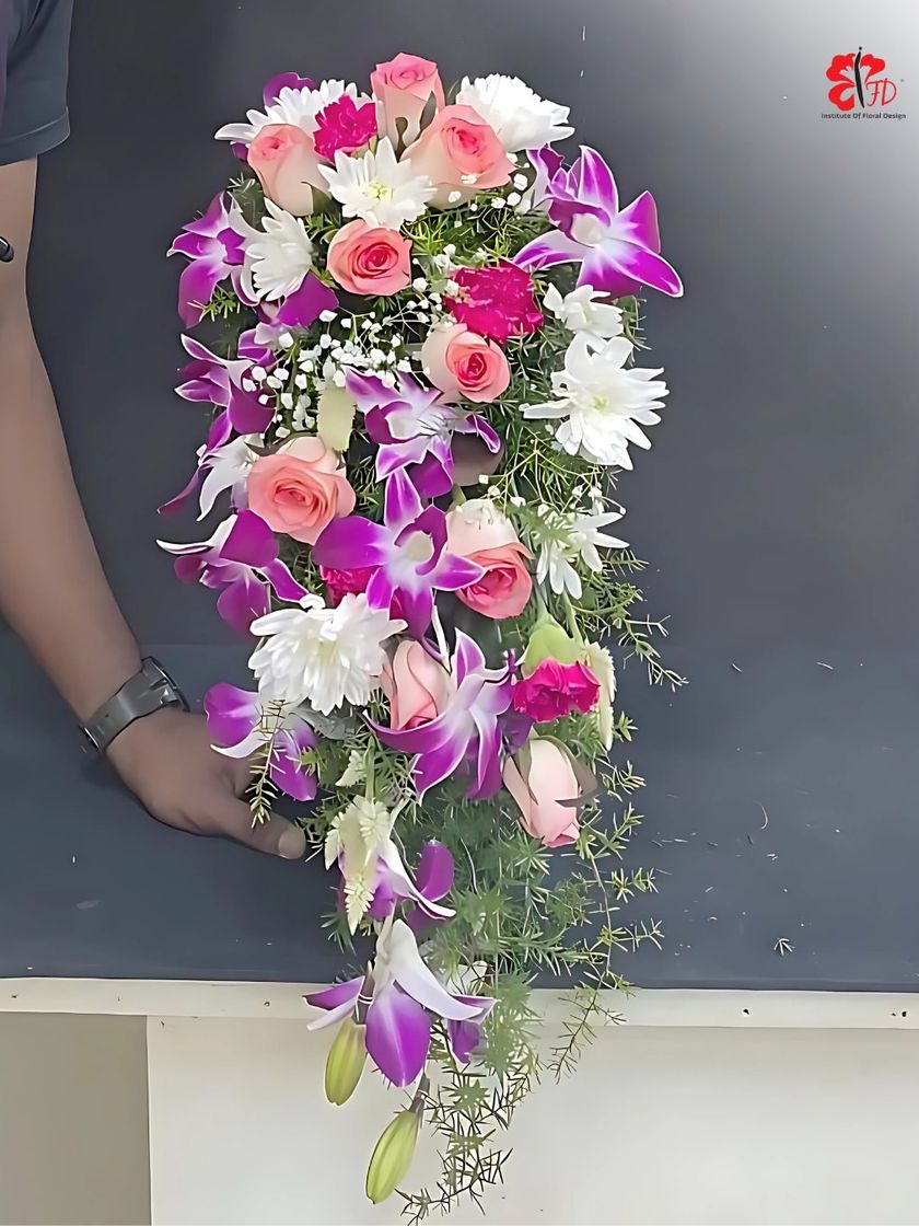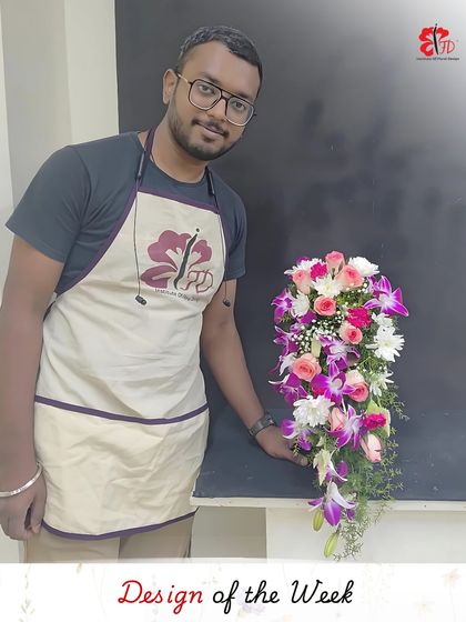 Our students learn to create a wide variety of floral art. This gallery features their beautiful work, including elegant hand-tied bouquets, cascading bridal arrangements, festive table settings for occasions like Diwali and Christmas, and unique basket designs. Every piece is made with fresh flowers and professional techniques.