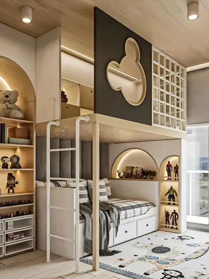 - Configuration: Two beds (Bunk style) or Upper bed with integrated Study Table/Play Area underneath (Loft style).