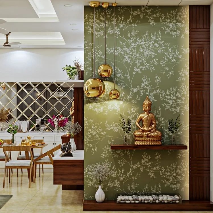 We extend the principles of peaceful design to your home's entrance. Our foyer solutions combine functional storage, like shoe racks and consoles, with serene decorative elements like Buddha statues and ambient lighting to create a calm and inviting first impression.
