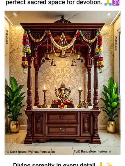 We specialize in creating timeless, temple-inspired pooja rooms using rich wood and detailed craftsmanship. These designs feature intricate carvings, traditional pillars, and options like jali doors to create a truly sacred and grand spiritual space in your home.