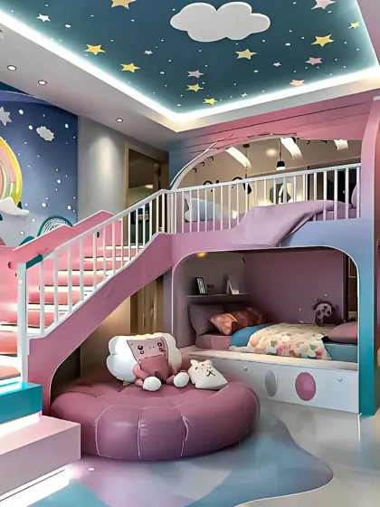 We design kids’ rooms for city apartments with space-saving layouts, sibling-friendly setups, and custom themes, plus we show you 3D models before building.