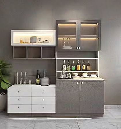 We create custom-designed crockery and bar cabinets that are both functional showpieces. Our units feature a mix of glass-front displays with internal lighting to showcase your finest collections and concealed cabinets for everyday storage.