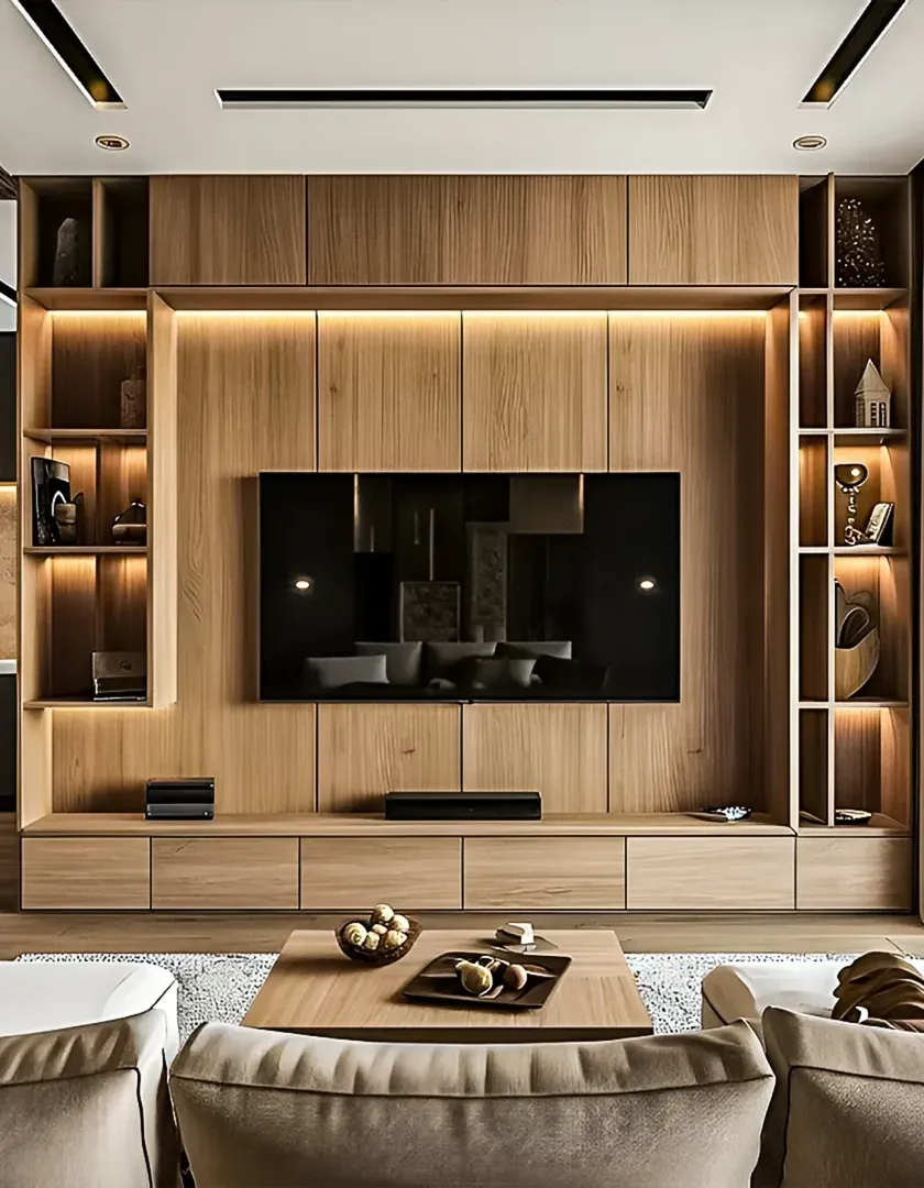 I design living rooms that are stylish, comfortable, and built for modern life. My focus is on creating custom TV walls that integrate entertainment systems seamlessly, using features like floating consoles, hidden storage, and ambient cove lighting to make the space feel both expansive and inviting.