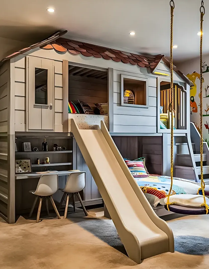 I specialize in creating fun, functional, and space-saving rooms for children. This collection showcases everything from themed bunk beds with integrated desks and slides to shared room solutions that give each child their own space.
