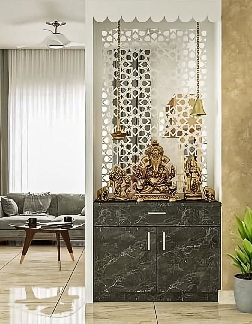 We design and build custom pooja units that respect tradition while fitting into a modern home. Our designs range from ornate, freestanding mandirs to compact units integrated with other furniture, always creating a serene space for prayer.
