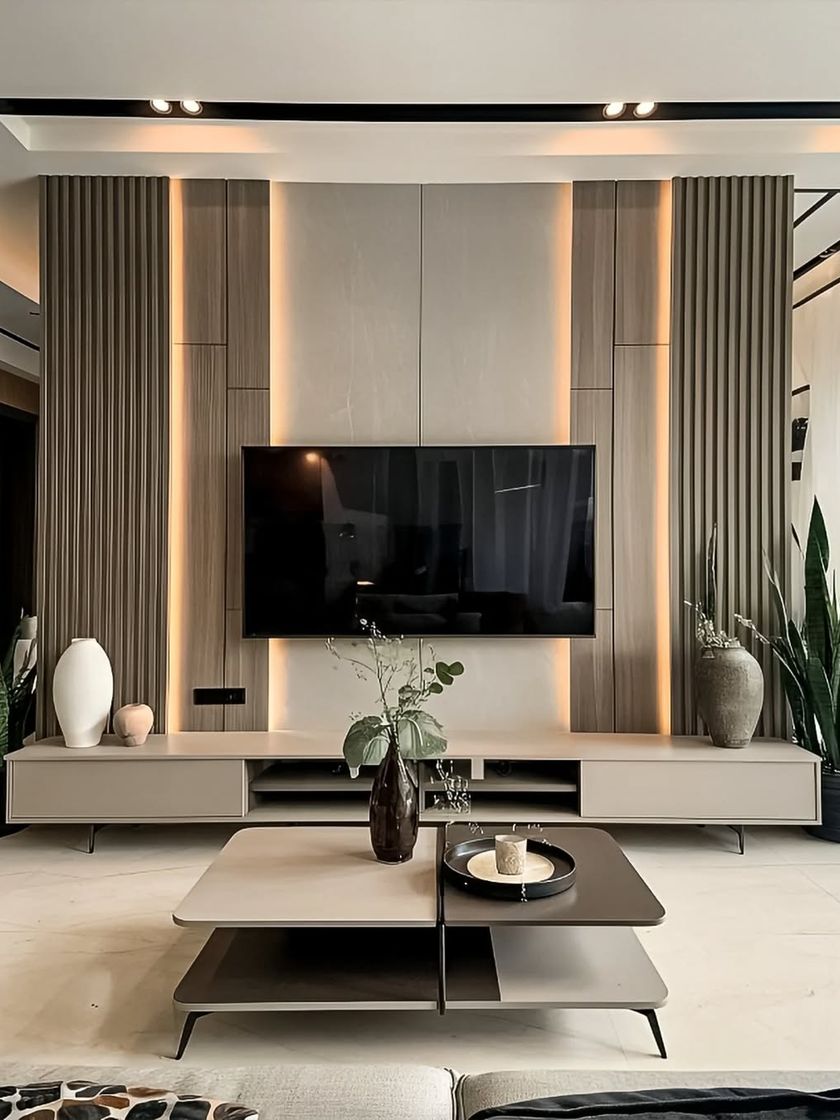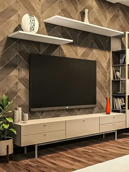 We design living rooms that are the heart of the home, balancing comfort and style. Our expertise includes creating custom TV units with features like fluted panels and integrated lighting, and designing open layouts with functional partitions.