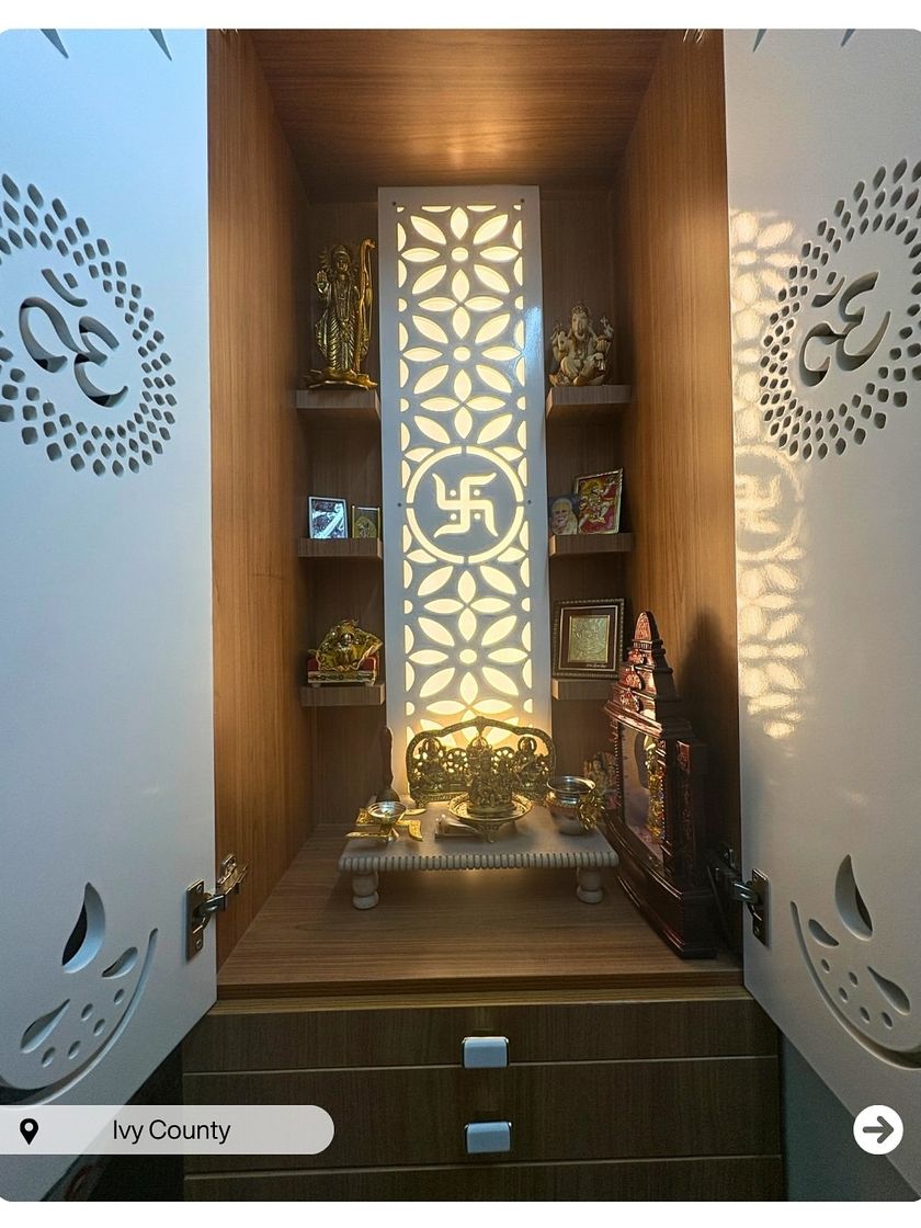 I design tranquil and beautiful pooja units that blend seamlessly with your home's modern aesthetic. From intricate jaali work and backlighting to custom storage, I create a sacred corner for peace and prayer.