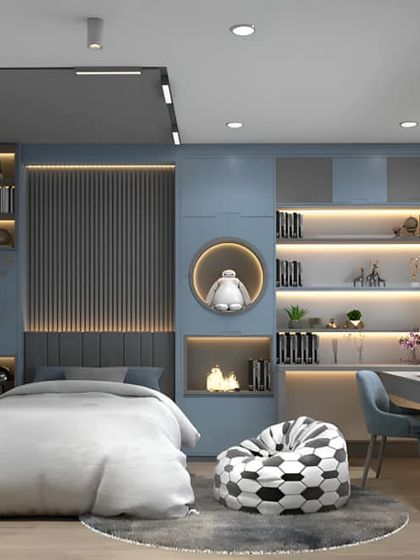 We design kids’ bedrooms with custom themes, space-saving furniture, dedicated play and study zones, and smart storage for small Bangalore homes.