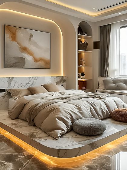 - Wall Treatments: Fluted wood panels, louvers, or stone cladding in Living area and Master Bedroom headboard wall.
