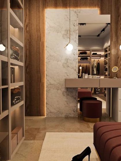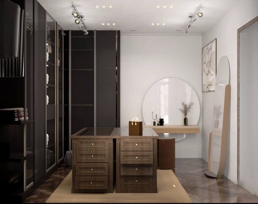 I design custom storage solutions that maximize space and keep your home organized. This includes elegant walk-in closets with specialized compartments and beautiful crockery units that serve as both storage and a display feature.