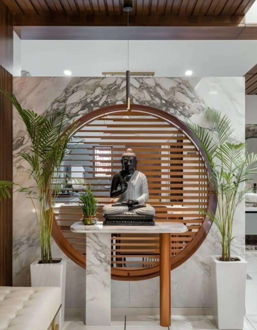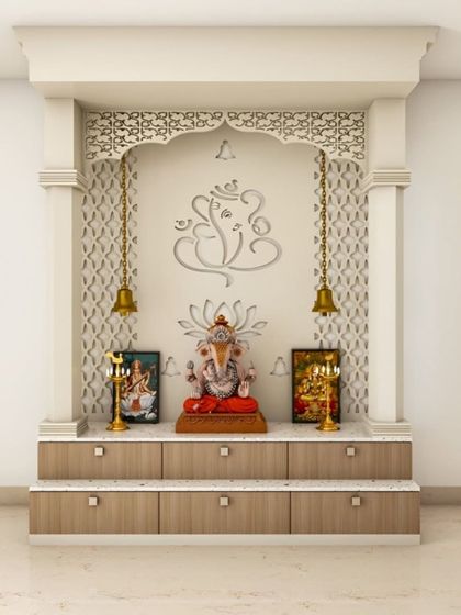 I design serene pooja spaces that blend modern aesthetics with traditional values, fitting perfectly into Bangalore homes. Whether you need a compact wall unit or a dedicated room, I create a peaceful corner using elements like intricate jali work, bells, and warm lighting.