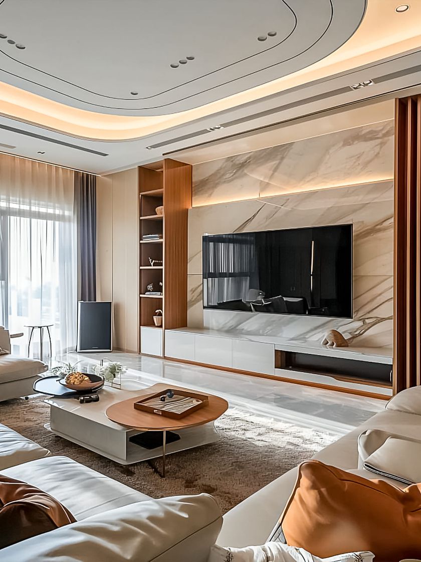 I design living and dining areas that are the heart of the home, combining comfort with style. My focus is on creating multi-functional spaces with custom TV units that hide clutter and elegant partitions that define zones without closing them off.