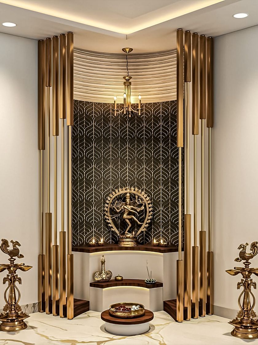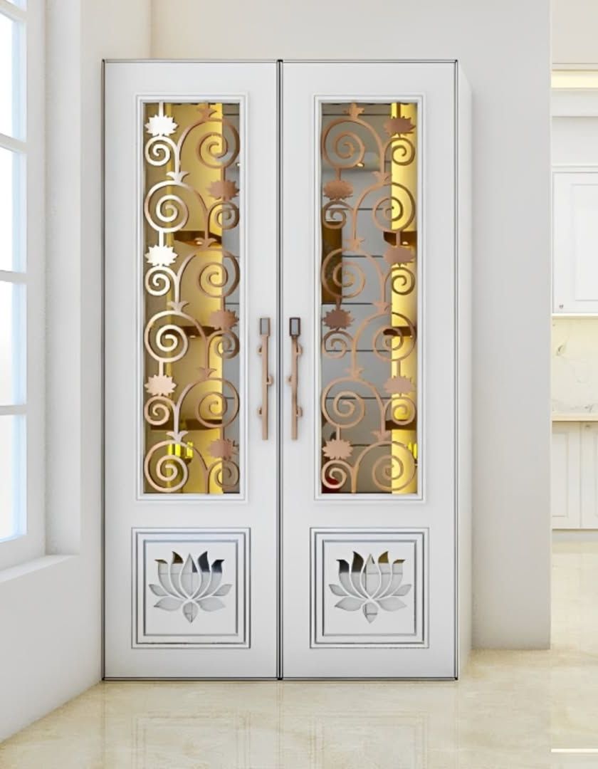 The entrance to your pooja room sets a spiritual tone for the entire space. We design and build custom doors, from traditional wood with intricate jaali work to modern fusion designs with metal and glass elements.