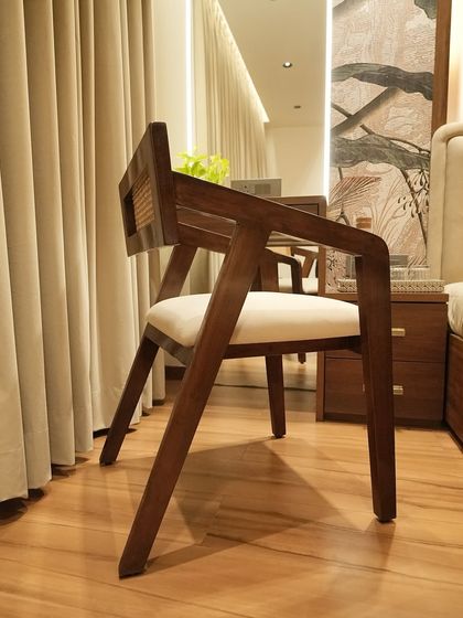 Minimalist & Vintage Design Vibe - We love cozy corners, warm tones, and blending modern aesthetics with vintage Indian decor using rattan and ribbed glass.