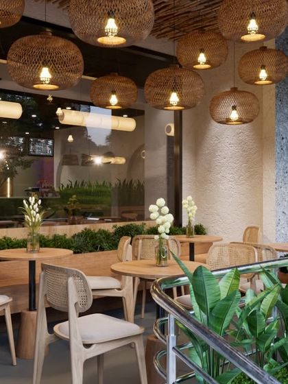 We design restaurant and cafe interiors with custom layouts, furniture, and lighting, show you 3D previews before building, and handle everything from planning to setup.