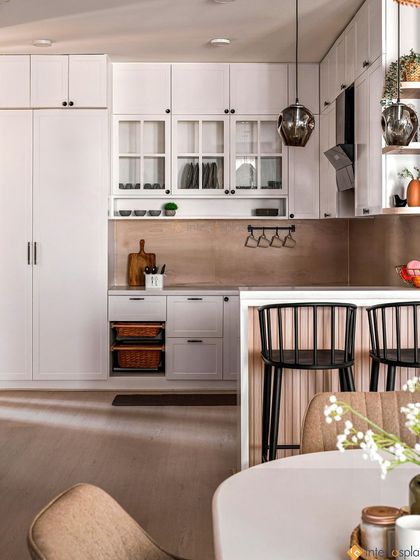 - Kitchens that are practical and pretty, with things like pull-out bins and custom spice racks.