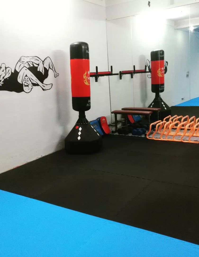 Our dojo is equipped for all aspects of MMA training. We have a fully matted area for grappling and striking, heavy bags, and a variety of functional fitness equipment for conditioning workouts.