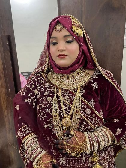 Brides seeking personalized transformations for their wedding events, particularly those wanting traditional South Asian bridal looks or modest hijabi styles.