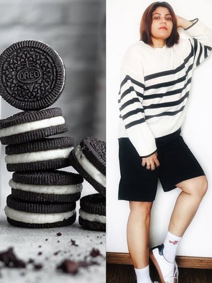 I create unique, playful content by styling outfits inspired by popular foods like Oreos, donuts, and Black Forest cake. This conceptual approach offers a memorable and highly shareable way for food and lifestyle brands to showcase their products.