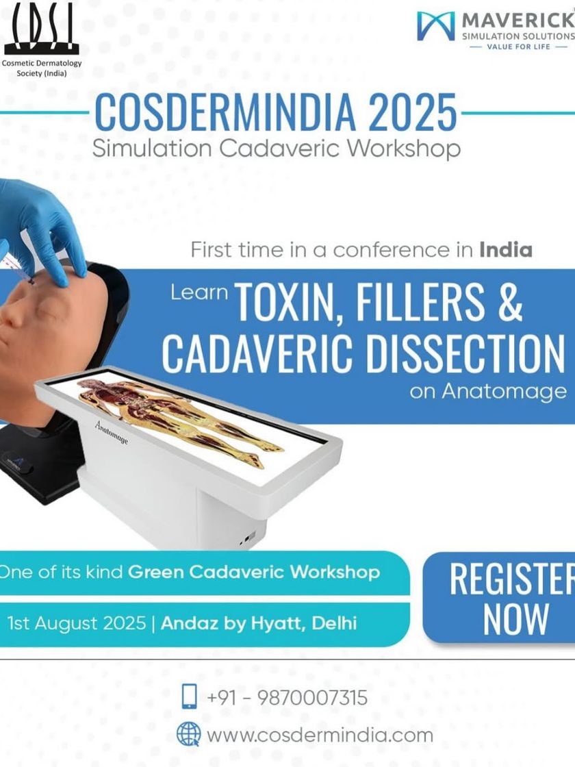 I am proud to be an organizing member of Aestheticon and COSDERMINDIA, two of India's premier annual conferences for cosmetic dermatology. These large-scale events bring together leading experts from India and abroad for lectures, debates, and extensive hands-on workshops covering everything from injectables and threads to lasers and hair restoration.