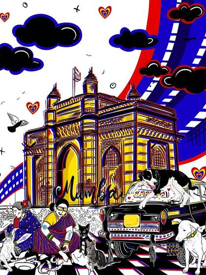 Mumbai & animals everywhere - City chaos and street animals show up in my work a lot. Some pieces support animal welfare too.