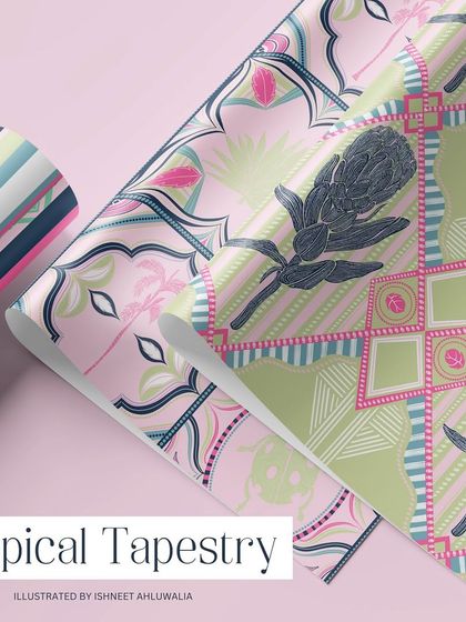 This collection focuses on sophisticated and versatile patterns for fashion and modern interiors. It includes my Greek-inspired 'Elysian Echo' series, vibrant tropical tapestries, and geometric tile designs with a soft, pastel palette.