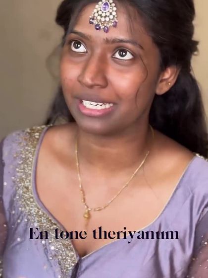 Hi, I'm Shwetha. Been doing makeup for 6+ years and honestly, finding shades that work on brown skin? Oru periya struggle (such a big struggle). That's why my kit is always full of real, inclusive products. People think makeup is just 'paint adikira velai' (just painting), but for me, it's pure art. Nothing beats seeing a bride's face light up when she sees herself - that's why I do this!
