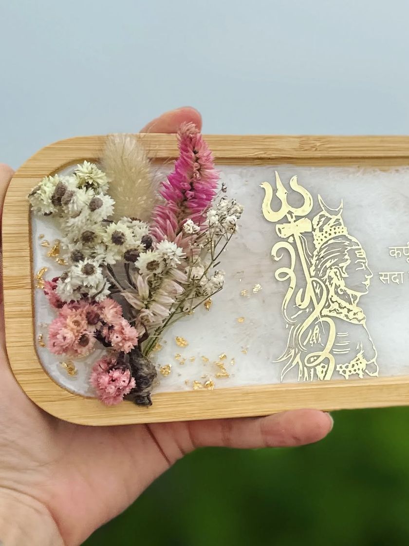 Bring blessings and positive energy into your home with my spiritual decor collection. I create items like pooja thalis, decorative trays with Shiva and Krishna motifs, and coasters or magnets with powerful mantras like the Gayatri Mantra or Jai Guru Ji. Each piece is made with devotion and care.