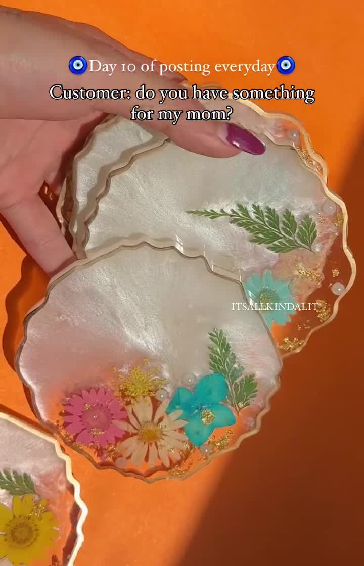 My handmade coasters and fridge magnets are perfect as unique return gifts for any event. I offer a wide variety of designs, including floral themes with real tiny flowers, quirky evil eye magnets, and spiritual mantra coasters. Every detail, from the shape and size to the colors, can be fully customized for you.