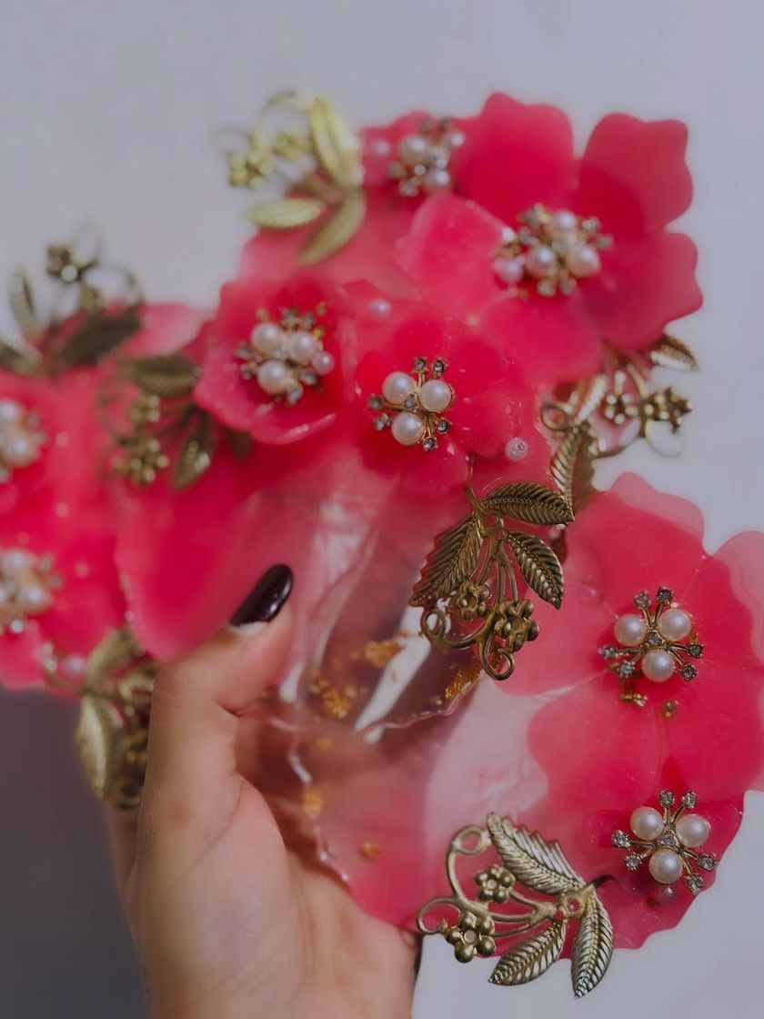 Don't let your beautiful wedding garlands wilt away. I can preserve the precious flowers from your varmala in custom resin art, turning them into timeless keepsakes. From coaster sets with your vows to decorative frames and car hangings, I can help you hold on to those memories forever.