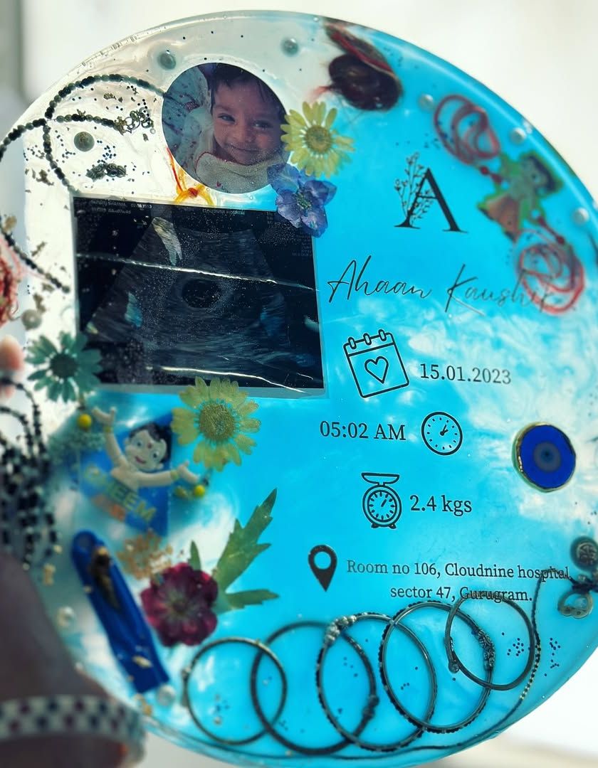 From your baby's first shoes and umbilical cord to sonogram pictures and birth details, I create precious resin keepsakes to hold onto those fleeting moments. These frames are a beautiful way to celebrate your family's journey and preserve the little things that mean so much.