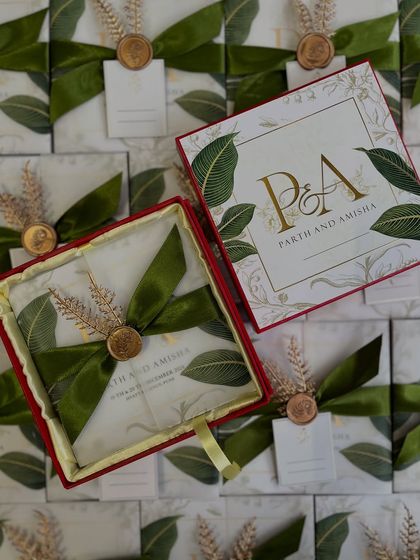 - Choose physical invites: luxury boxed invitations, scrolls with glass boxes, layered sets, or vellum with our signature wax seals