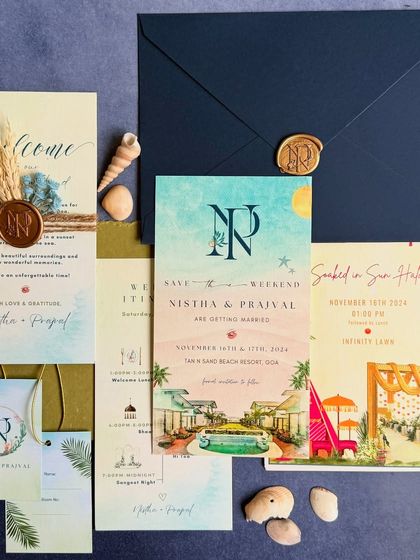 - Full custom wedding paper suite (think coordinated invites, itineraries, welcome notes, all matching).