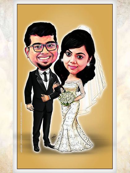 - Couple caricatures in Indian (saree, sherwani) or Western outfits, or whatever theme you’ve got in mind. Want a funny wedding invitation art? I’m your guy.