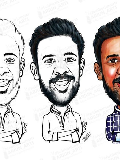 Hey, I’m Arjun. First gig after lockdown was at Taj Mahal Palace, Mumbai—felt like magic, yaar. Guests were all smiles, and I remembered why I love art. Sometimes my work gets deep—like that covid survivor gifting a caricature to their hospital heroes. I even show folks how to make a face mask from plastic bottles. Parties? Oh, you meet wild people—one aunty wanted her tongue out in the sketch! I just want to spread some happy vibes, one doodle at a time.
