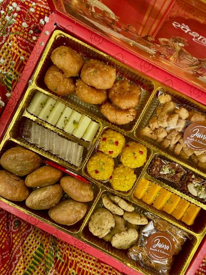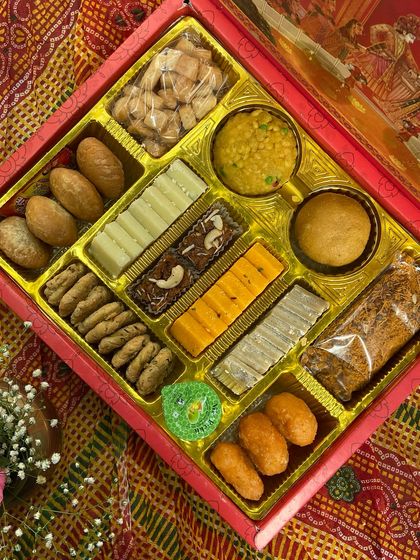 Event Platters and Hampers - From custom pooja platters to bhaji boxes for weddings, Diwali hampers, and Sargi items for Karwa Chauth.