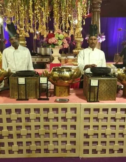 We specialize in comprehensive wedding catering services with a focus on authentic vegetarian cuisine. Our offering includes personalized menu planning, live cooking stations, and elegant thematic setups with decorative elements.
